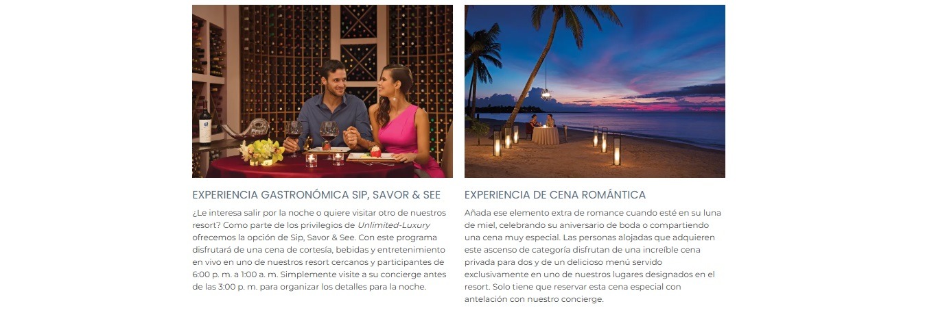 Le espera una variedad de opciones gastronómicas internacionales especializadas, y sin necesidad de hacer reservas. Dreams® Jade Resort & Spa cuenta con seis restaurantes a la carta, un bufet y una cafetería. O puede disfrutar de una deliciosa comida en la privacidad de su suite. Sus comodidades Unlimited-Luxury®incluyen todos los refrigerios y comidas. Las opciones gastronómicas 24 horas permiten a las personas hospedadas disfrutar de refrigerios nocturnos en Coco Café.
