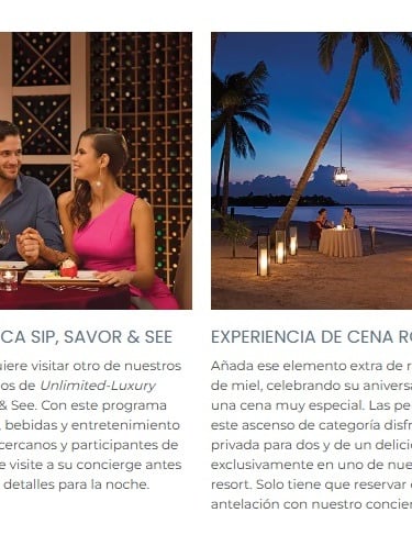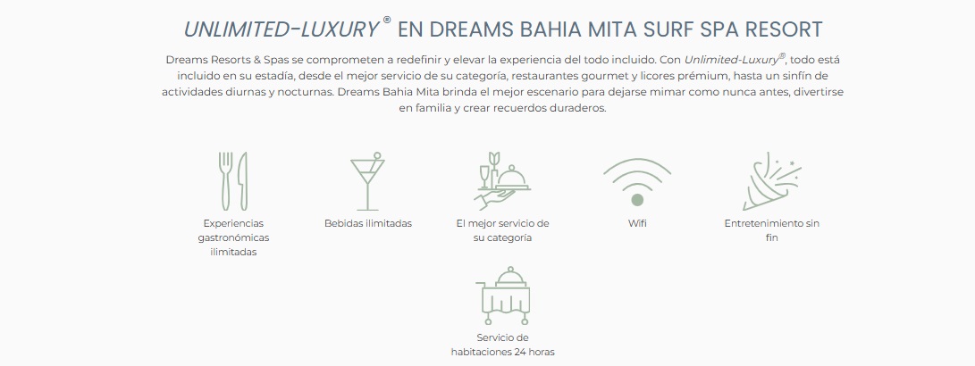 Hay una experiencia culinaria para todos los paladares en Dreams Bahia Mita Surf & Spa Resort, desde menús inspirados en la temporada hasta auténticos platos regionales clásicos. Disfrute de refrigerios nocturnos en World Cafe, quédese y pida el servicio de habitaciones, o beba su cóctel favorito o nuestras bebidas exclusivas en uno de nuestros seis bares. Sus privilegios Unlimited-Luxury® incluyen todas las experiencias gastronómicas y bebidas.