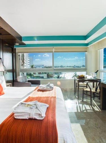 Lujo es sinónimo de confort, para ejemplificar, te recomendamos esta hermosa Suite con vista panorámica hacia el océano