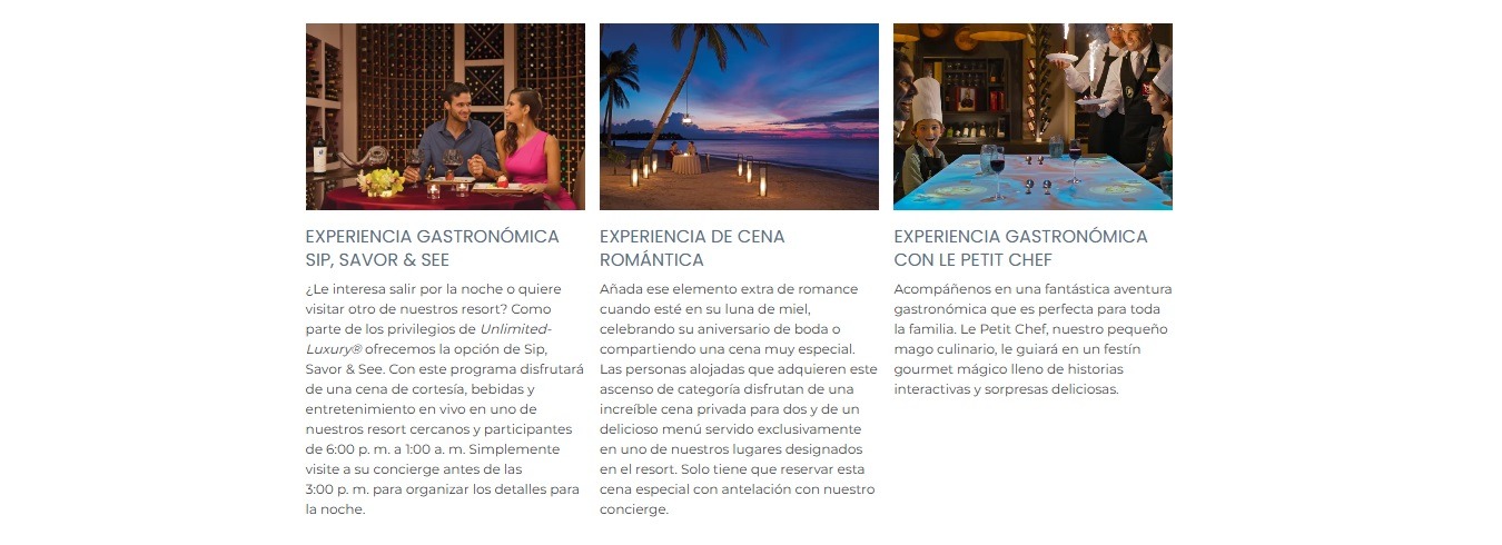 Deléitese con una variedad de restaurantes de especialidades internacionales en Dreams® Riviera Cancun Resort & Spa con menús que incluyen los clásicos de la región. Disfrute de cualquiera de nuestras nueve opciones, que incluyen seis restaurantes a la carta, un bufet, una parrilla y una cafetería. Cada menú incluye deliciosas opciones de cocina de todo el mundo, por lo que ofrecen algo exquisito para todos los paladares. Tome su cóctel favorito, o la bebida del día, de cualquiera de nuestros seis bares y disfrútelo mientras descansa junto a la piscina o se relaja en la playa.